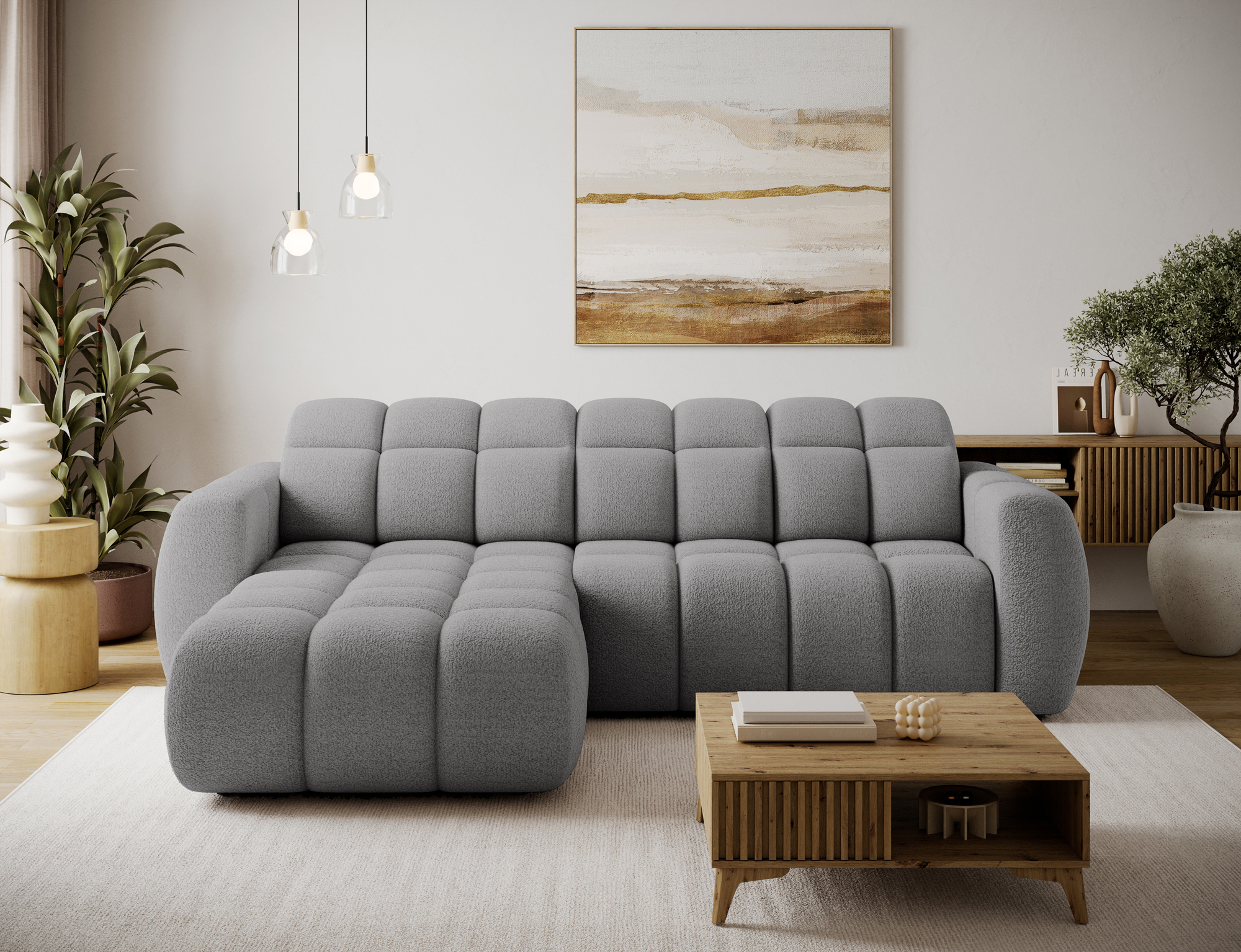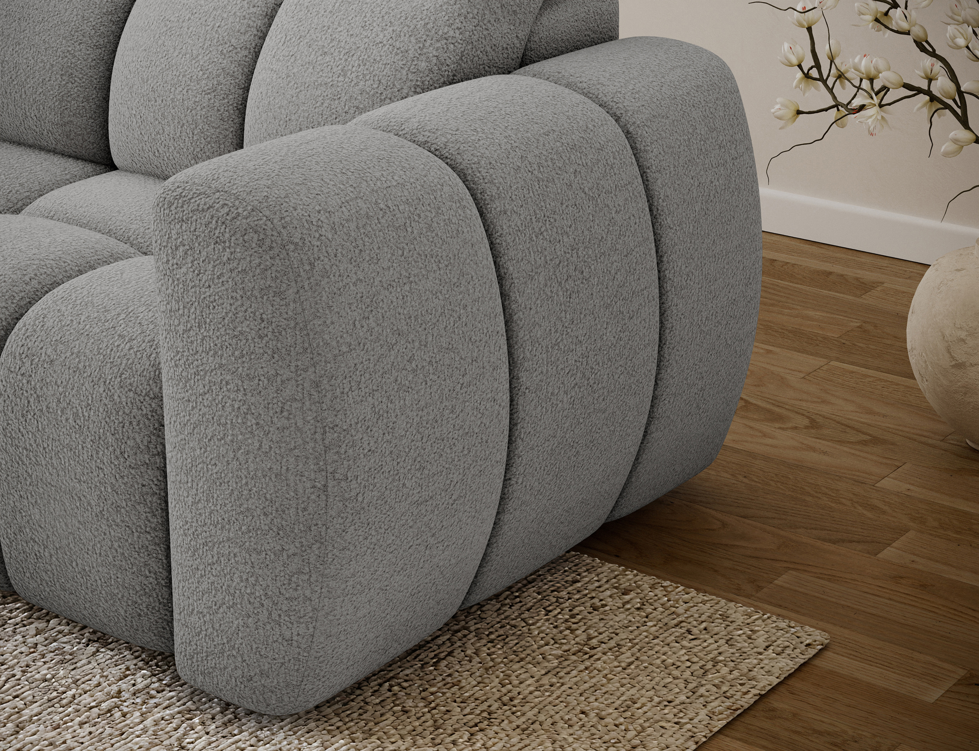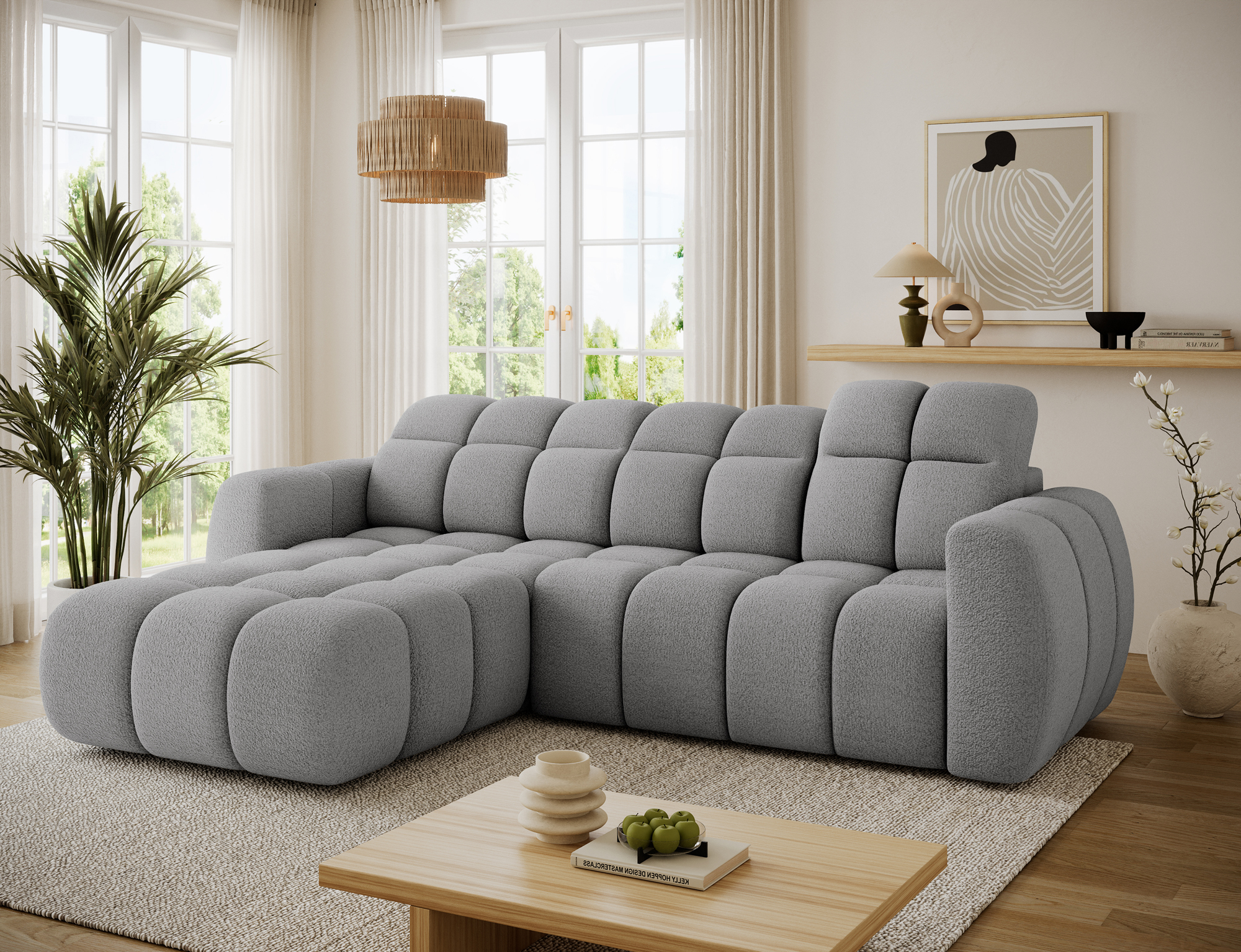 Every detail of the Titi corner sofa bed has been carefully designed. The fully upholstered back allows the sofa to be placed freely in the room, including in the center of the living area. Subtle 3 cm plastic legs provide stability while maintaining a light, modern appearance. High-quality materials and advanced technical solutions make the Titi corner sofa bed a perfect e-commerce product, combining aesthetics, durability, and everyday comfort.