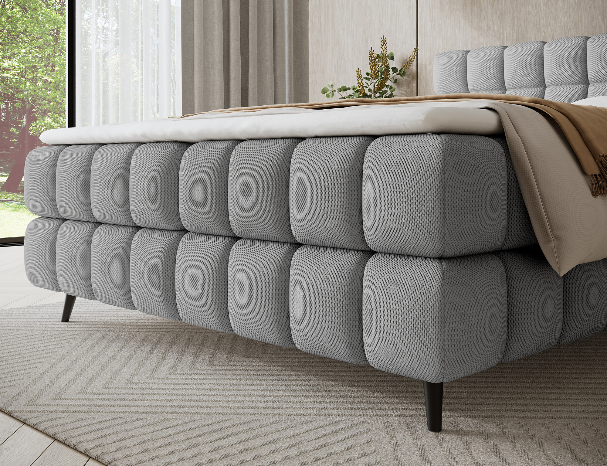 The Top model is crafted with your comfort in mind. Its base combines bonell springs with T2540 foam, providing optimal body support and perfect air circulation throughout the night. The headboard is filled with T2130 polyurethane foam, ensuring a soft yet supportive surface — ideal for reading or watching TV in bed. The seat height of 51 cm makes getting in and out of bed effortless while adding to the overall sense of comfort.