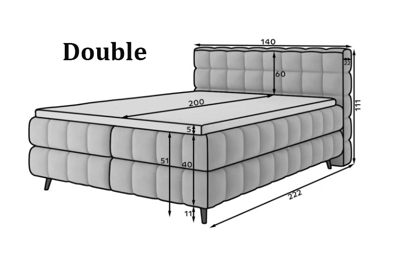 The Top model is crafted with your comfort in mind. Its base combines bonell springs with T2540 foam, providing optimal body support and perfect air circulation throughout the night. The headboard is filled with T2130 polyurethane foam, ensuring a soft yet supportive surface — ideal for reading or watching TV in bed. The seat height of 51 cm makes getting in and out of bed effortless while adding to the overall sense of comfort.
