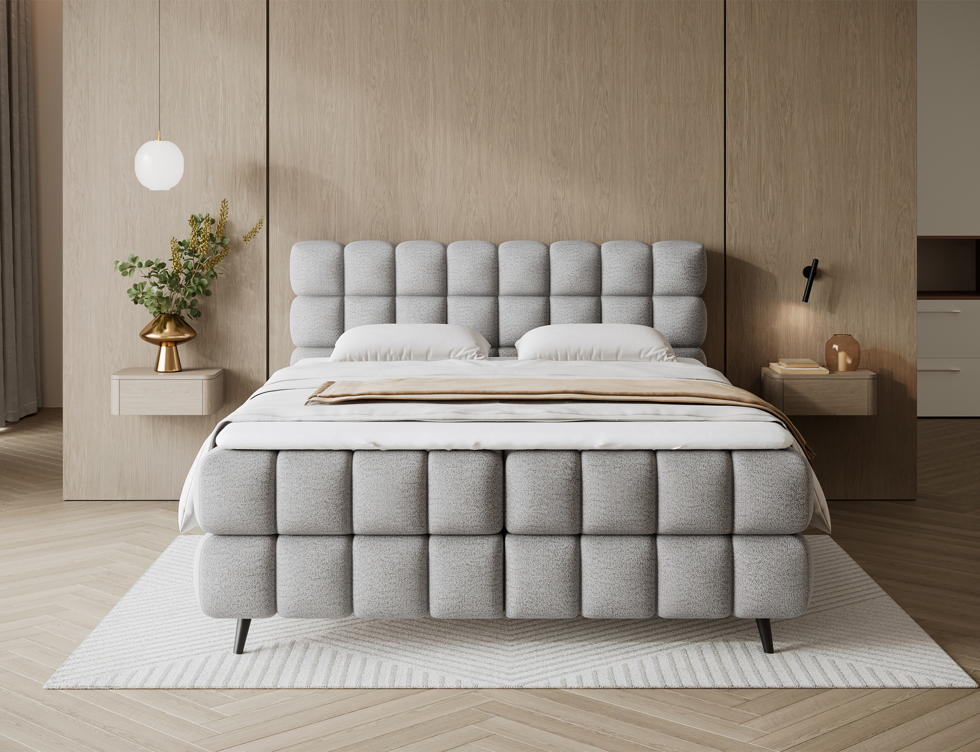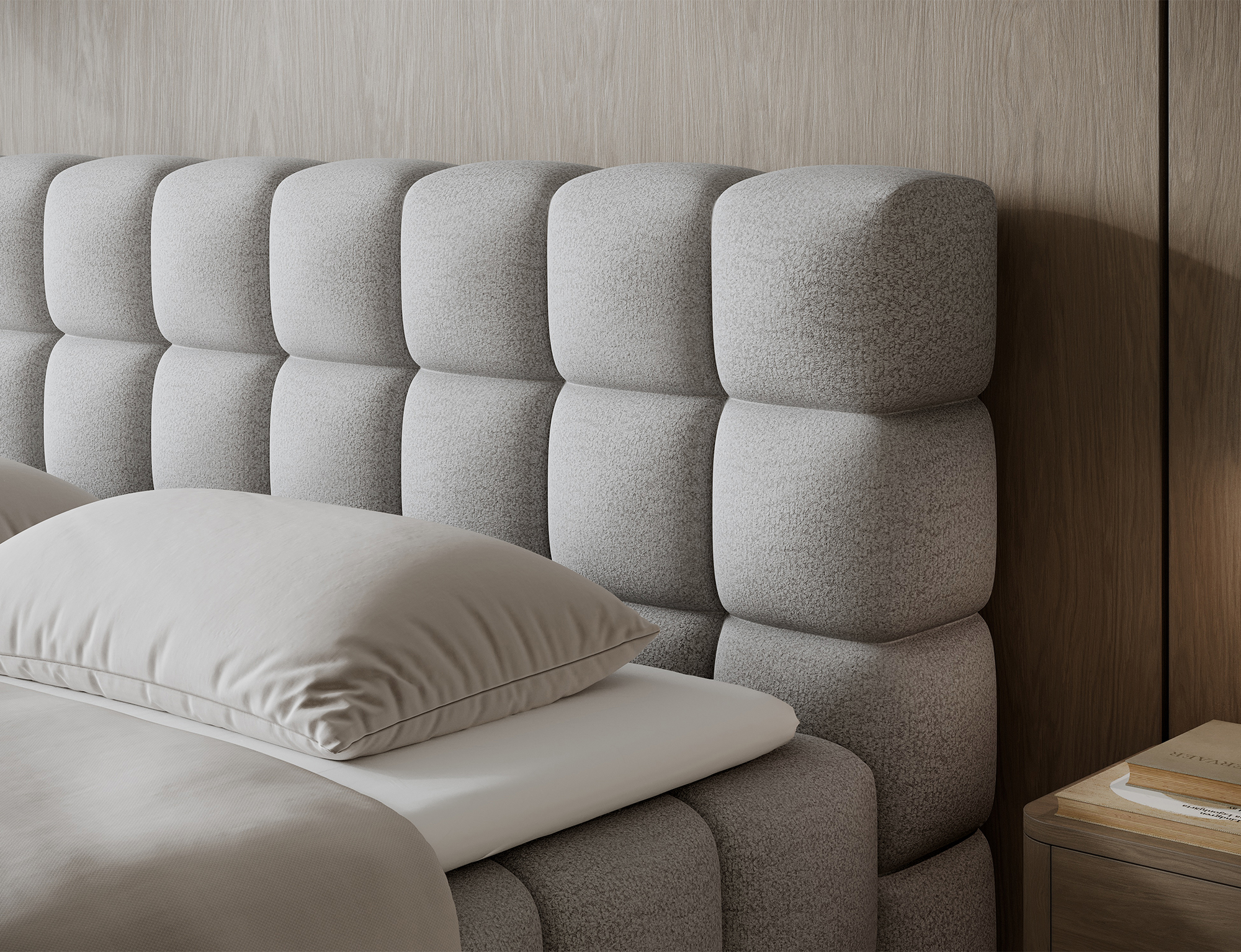 The Top model is crafted with your comfort in mind. Its base combines bonell springs with T2540 foam, providing optimal body support and perfect air circulation throughout the night. The headboard is filled with T2130 polyurethane foam, ensuring a soft yet supportive surface — ideal for reading or watching TV in bed. The seat height of 51 cm makes getting in and out of bed effortless while adding to the overall sense of comfort.