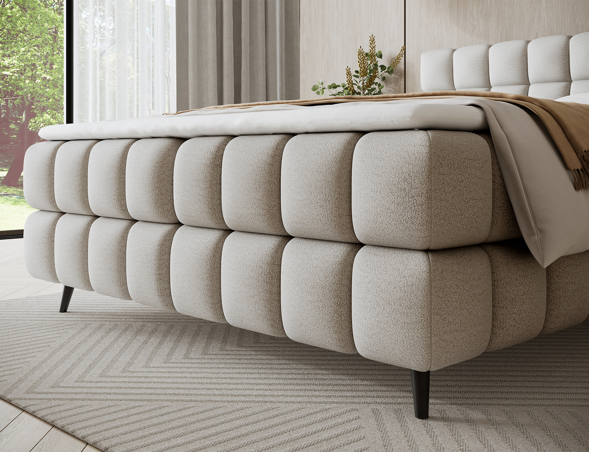 Top is not just about comfort and style — it’s also highly functional. The bed includes a spacious bedding storage compartment, perfect for keeping blankets, pillows, or duvets neatly organized. Its sturdy 11 cm black wooden legs give the structure a sense of lightness and make it easier to clean underneath. Top is the perfect choice for anyone who values modern design, practical solutions, and high-quality craftsmanship.