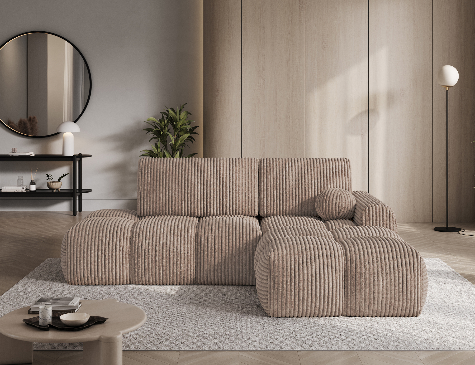 With a seat height of 50 cm, the Valaria offers excellent comfort and ergonomic support. Carefully selected upholstery fabrics are durable, easy to clean, and pleasant to the touch, ensuring a long-lasting elegant look. The Valaria Corner Sofa perfectly combines design, practicality, and comfort – a stylish choice for every modern living space.