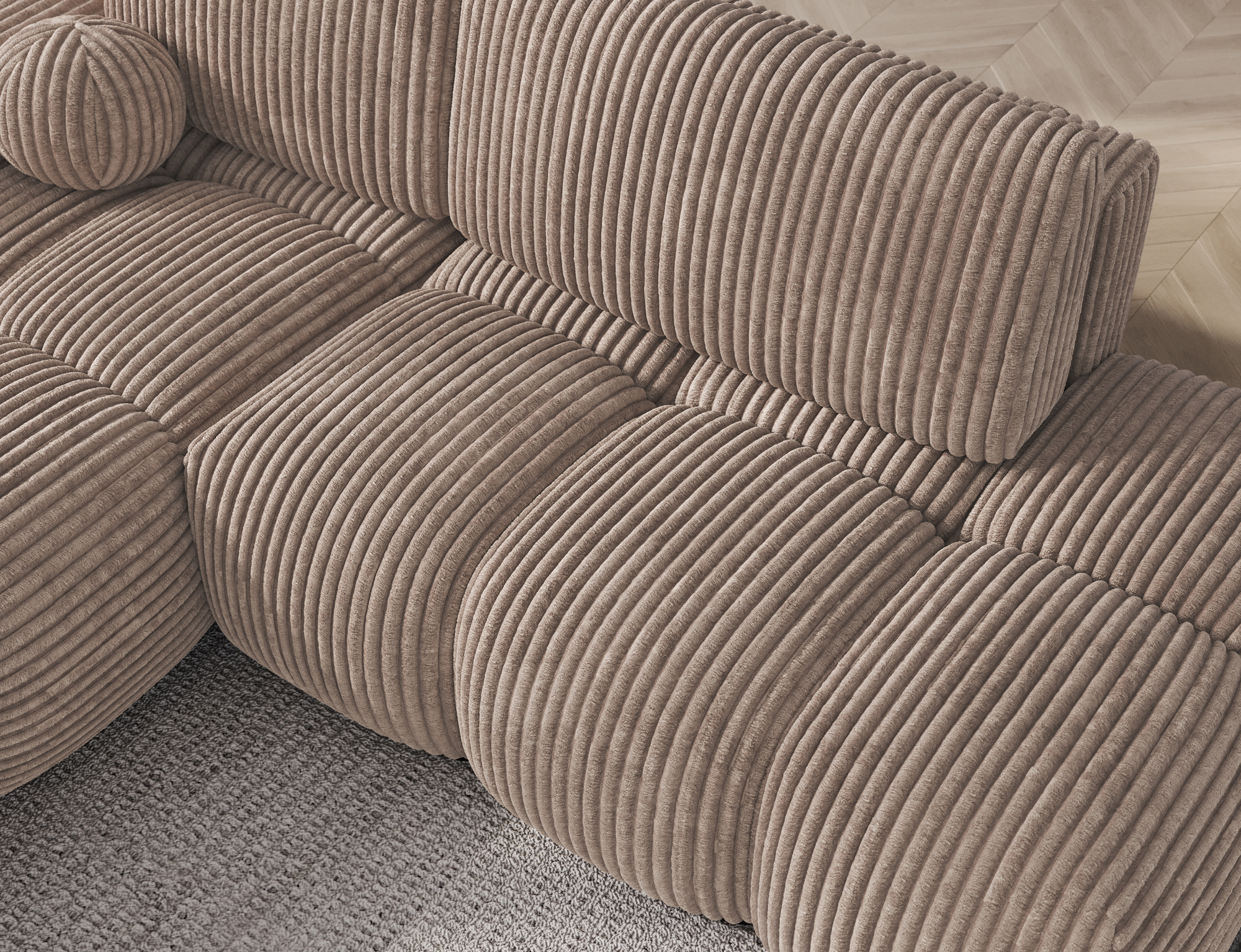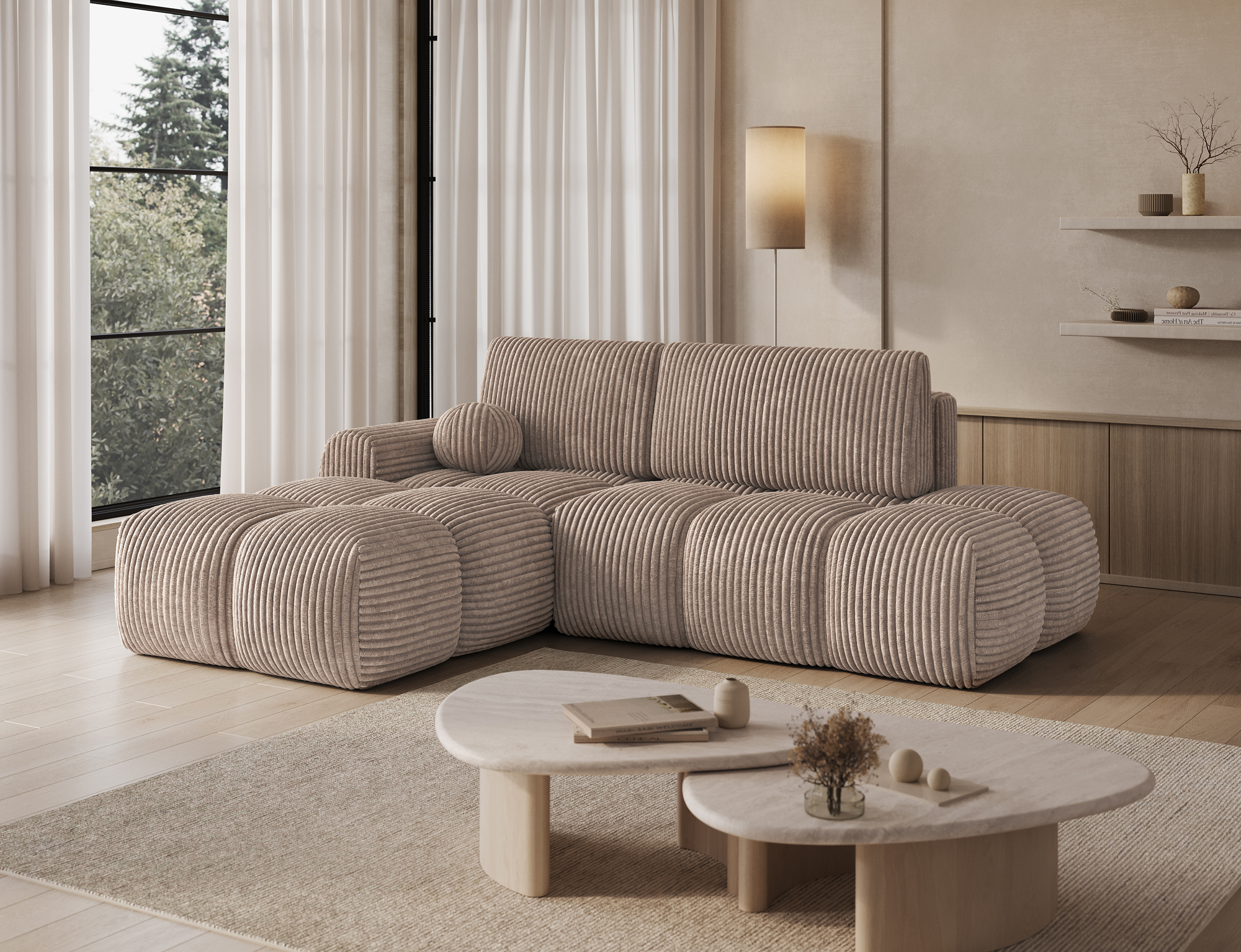 With a seat height of 50 cm, the Valaria offers excellent comfort and ergonomic support. Carefully selected upholstery fabrics are durable, easy to clean, and pleasant to the touch, ensuring a long-lasting elegant look. The Valaria Corner Sofa perfectly combines design, practicality, and comfort – a stylish choice for every modern living space.