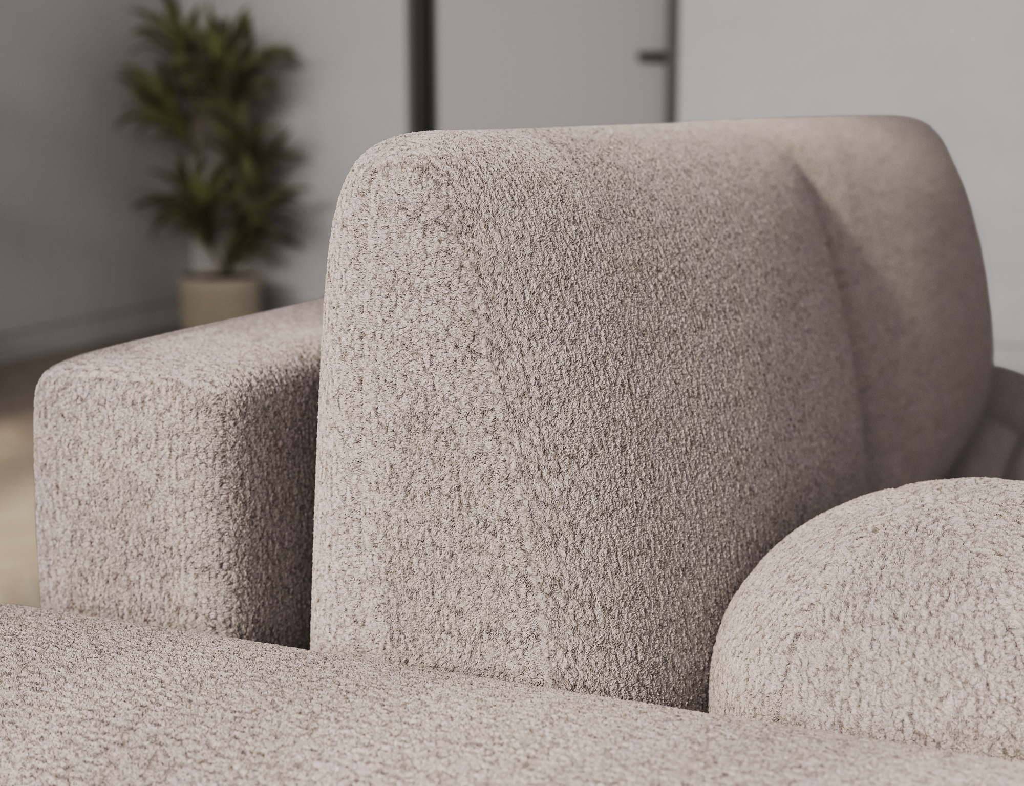 The Valaria Corner Sofa combines style, functionality, and exceptional comfort. Its gently rounded lines and elegant form bring a cozy yet modern character to any interior. The upholstered back allows you to place the sofa anywhere in the room – even in the center – creating an inviting relaxation zone. With its optimal dimensions of 227×170×95 cm, Valaria fits perfectly into both compact and spacious living rooms.