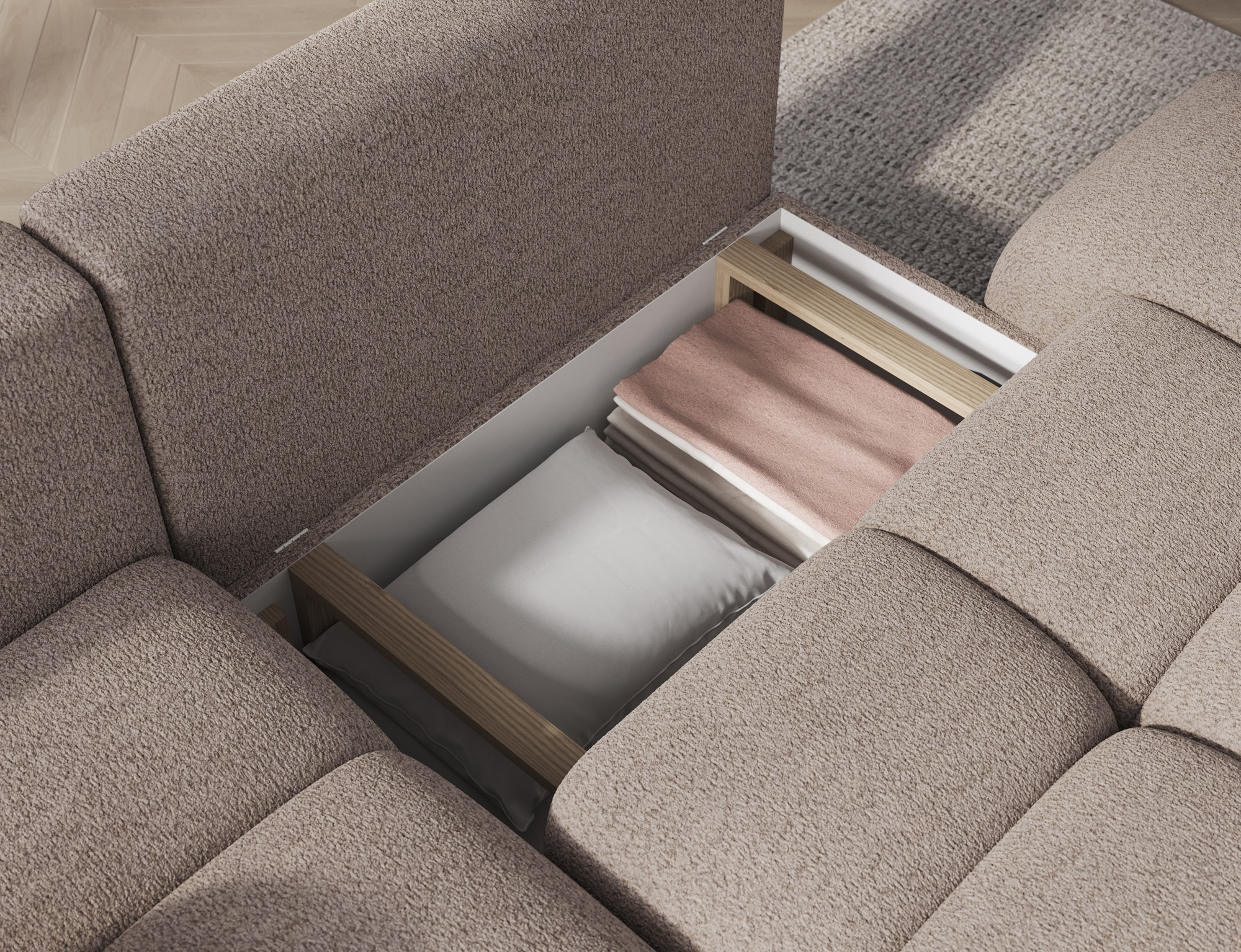 The Valaria model features a convenient sleeping function with a surface of 95×205 cm, allowing you to easily transform the sofa into a comfortable bed. The intuitive DL mechanism ensures smooth unfolding, while the bedding storage compartment (85×60×23 cm) provides extra space for blankets, pillows, and duvets. It’s a practical solution that every modern household will appreciate.
