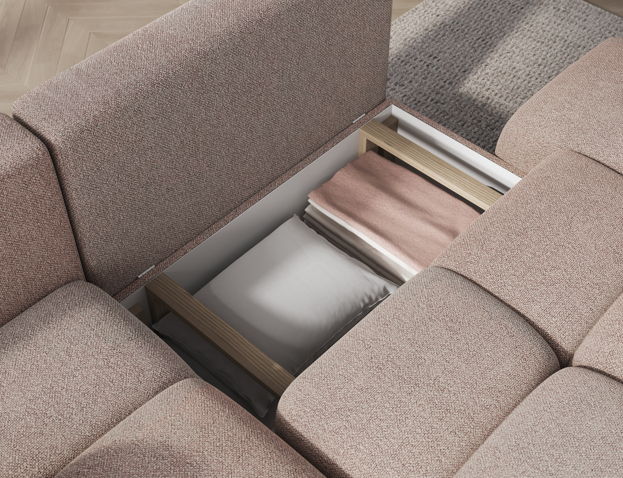 The Valaria model features a convenient sleeping function with a surface of 95×205 cm, allowing you to easily transform the sofa into a comfortable bed. The intuitive DL mechanism ensures smooth unfolding, while the bedding storage compartment (85×60×23 cm) provides extra space for blankets, pillows, and duvets. It’s a practical solution that every modern household will appreciate.