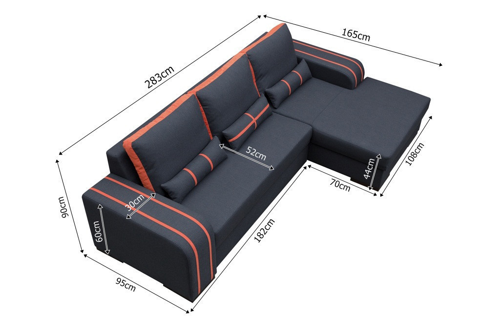 • Spacious Layout: 283 × 165 cm corner footprint, left or right corner configuration, fits snugly into your living space.