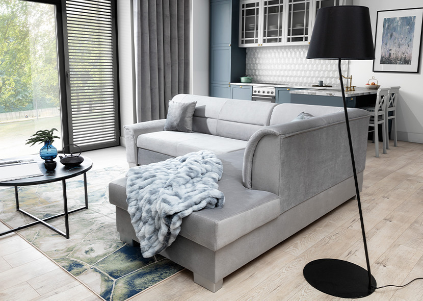 The ZenRest Corner Sofa Bed with Storage is a piece of furniture with a traditional structure, the charm of which lies in the details in the form of backrests with delicate finishes giving expressiveness. Subdued, harmonious color combinations, the material from which the upholstery was made and the overall design perfectly match the style characteristic of interiors decorated in accordance with the Scandinavian trend. The comfort of rest is a key aspect when choosing a specific model of upholstered furniture. The ZenRest Corner Sofa Bed with Storage is equipped with highly elastic polyfoam reinforced with sinuous springs. Thanks to this, it allows for proper positioning and supporting the body while resting. Flexible filling minimizes the risk of unsightly cavities in the seats and backrests, even during long-term use. The corner sofa is dedicated to both owners of spacious interiors and people who are looking for a multifunctional piece of furniture. The dimensions of 247x214x83 cm and the folding function of the dolphin type provide the user with spaciousness and comfort. An intuitive unfolding system and a spacious bedding container located in the ottoman are an additional advantage that makes the use of the furniture even more pleasant. The ZenRest Corner Sofa Bed with Storage is eagerly chosen by people who love solid, elegant and subdued furniture that improves comfort during relaxation.